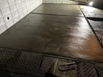 土間コンクリート仕上げ工事|1月の寒い時期、夜遅くまでの施工